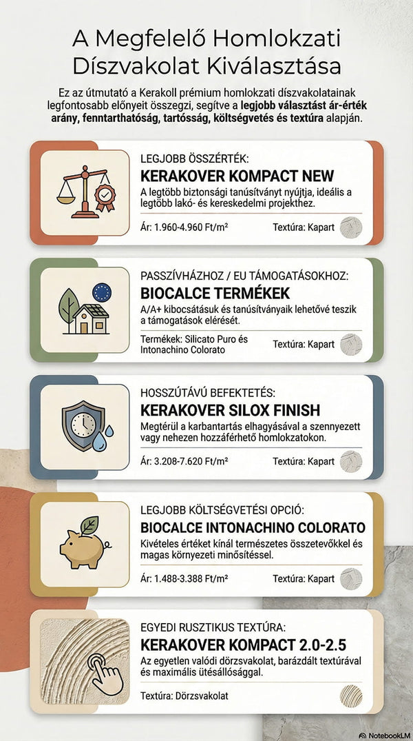 Ez az útmutató a Kerakoll hét prémium nemesvakolatát elemzi, és segít kiválasztani az Ön épületéhez, költségvetéséhez és igényeihez legjobban illő megoldást.
