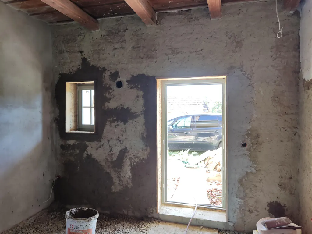 Két rétegben vakoltam le vályogházam falát. Elégedett vagyok a vakoló anyag minőségével, könnyen lehet vele dolgozni, a finom szemcseméretnek köszönhetően homogén, sima felületet lehet vele képezni. Száradás is hasonló, mint a cementes társainál, jól meghúz, a mészhabarcsnál keményebb vakolatréteg az eredmény.